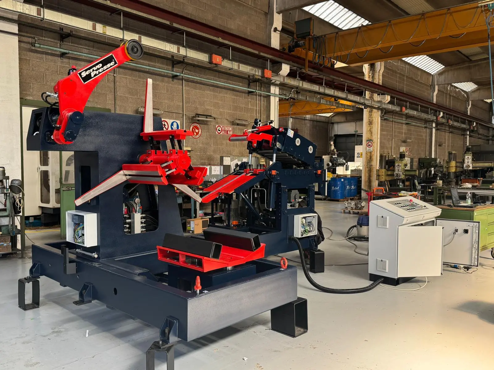 Całe wdrożenie zostało poprzedzone odbiorem technicznym u producenta we Włoszech, a następnie zrealizowane w zakładzie Klienta. Z uwagi na gabaryty i masę prasy kluczowym etapem była logistyka – transport, rozładunek i precyzyjne ustawienie w miejscu docelowym.