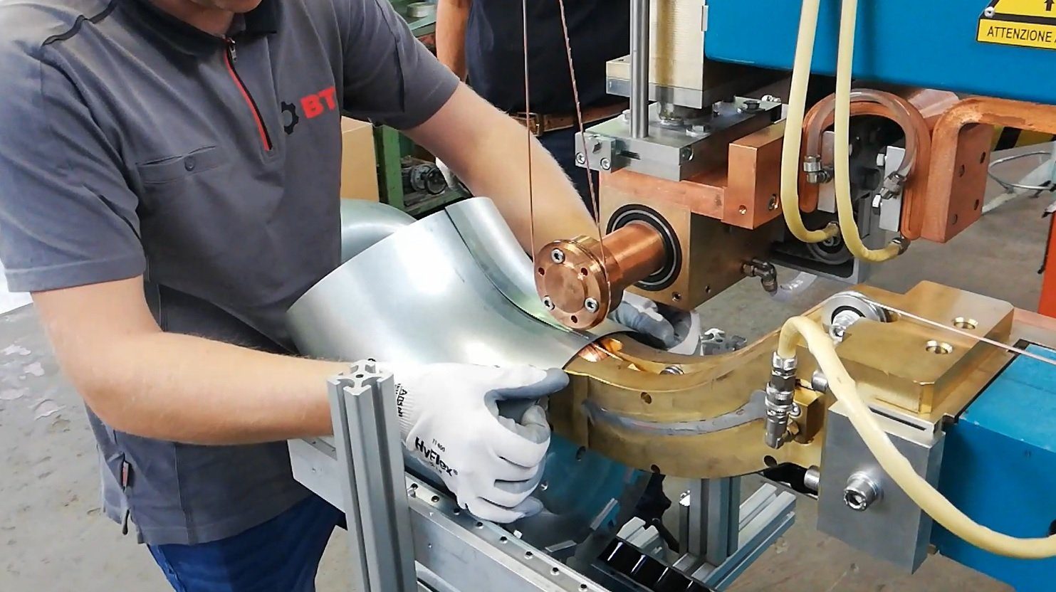 Do procesu zgrzewania, po omówieniu wszystkich aspektów technicznych, Klient zdecydował się na parę zgrzewarek liniowych CEMSA RVG-SE / RVG-SI z załadunkiem manualnym. Pierwsza zgrzewarka umożliwia zgrzewanie po zewnętrznej stronie kolana, natomiast cały proces zgrzewania kończy się na drugiej maszynie, która zgrzewa po wewnętrznej stronie.