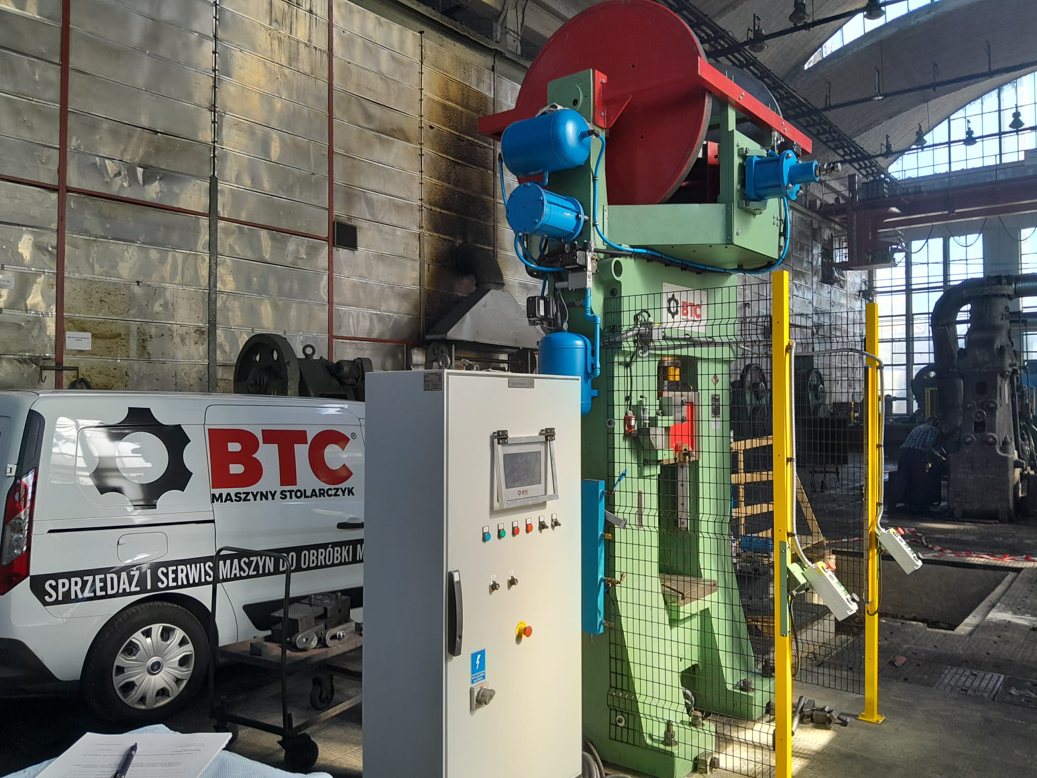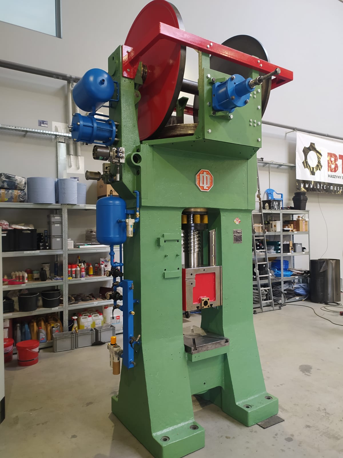 Prasa wyprodukowana w latach 80, przeszła generalny remont i została przystosowana do aktualnie obowiązujących norm i przepisów bezpieczeństwa. Prasa została certyfikowana znakiem CE oraz została sporządzona ocena ryzyka. Nowoczesny system sterowania pozwala między innymi na procentowe ustawianie energii suwaka, aktywację pracy wyrzutnika dolnego, wybór sposobu sterowania pomiędzy dwuręcznym przyciskiem, a pedałem nożnym. Przy tym projekcie przepracowaliśmy blisko 800 roboczogodzin, a efekt końcowy jasno pokazuje, że był to bardzo dobrze wykorzystany czas.